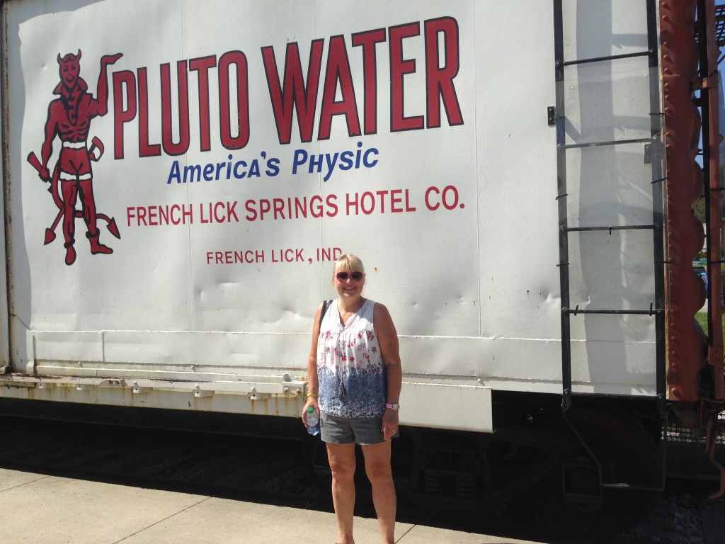 So the scrapes from the bed rails were not too bad and I knew that the clearance between truck and trailer was 5 inches when it should have been 6 to 7 minimum, so I found a nice Amish trailer shop close by and had them raise the hitch, so that was good. Leaving Raccoon Lake for Patoka Lake was uneventful and the drive should have been a fairly straight shot south. Then the fun started as the phone started to send us off in the wrong direction. After about 30 miles in the wrong direction, we got our bearings and found our way to the park. Not too bad. As we approached the gate there was a canopy over the entrance gate that was not marked and was the only entrance to the park so I ASSumed that I could get under no problem. I missed the 2″ by 12″ sign warning that it was 12 foot high. As I slowed to the gate, CRUNCH – the sound of my front A/C unit being relocated. So the A/C unit was replaced and a patch to the foot square tear in the roof applied, we back in one piece – now that was UGLY. Patoka Lake is the second largest in Indiana and has no private property on the lake. First lake I ever saw with no houses, cabin, or RV’S in site. We did some hiking in West Baden then took a ride on the French Lick Scenic Railway. It was a pretty ride out into the country while we got a history lesson of the area. French Lick was the home to many illegal casinos and was THE place to be until Las Vegas started opening its casinos in 1948. About a decade ago. gambling returned with the opening of the new French Lick Casino.