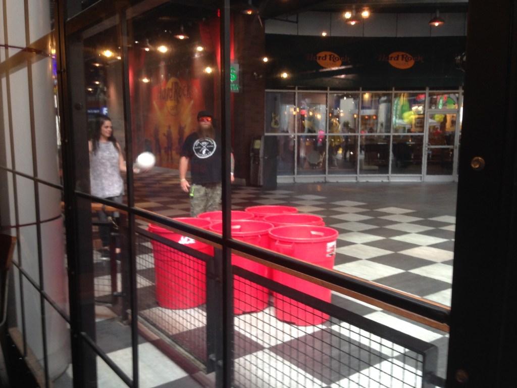 Well, we made it to Charlestown State Park on the Ohio River. Across the river is Louisville and we started today by taking a walking tour of the historic district in Central Park. The entire area is beautifully kept and the architecture is amazing. The young tour guide was a wealth of knowledge of the area and all of Louisville. Then we traveled into the downtown area to find some lunch. What we found was the First Annual Mac and Cheese Festival. Over 40 different ways to make Mac and Cheese. We decided to do the barbecue at Guy Fiery’s while listening to a Celtic trio play bluegrass – wild stuff! On the way back down Fourth Street, we stopped at his and hers shops again: hers was the Fudgery and next door was the Jim Beam Urban Distillery. Really strange here is the way they play corn hole. No beanbags, no board with a hole in it. Each side has six Ace garbage cans. Teams take turns throwing 2 volley balls at the other team’s cans. get one in, that can is removed. You win when you remove all the opponents cans. Proper attire means having multiple tattoos and you must hold an alcoholic drink while shooting.