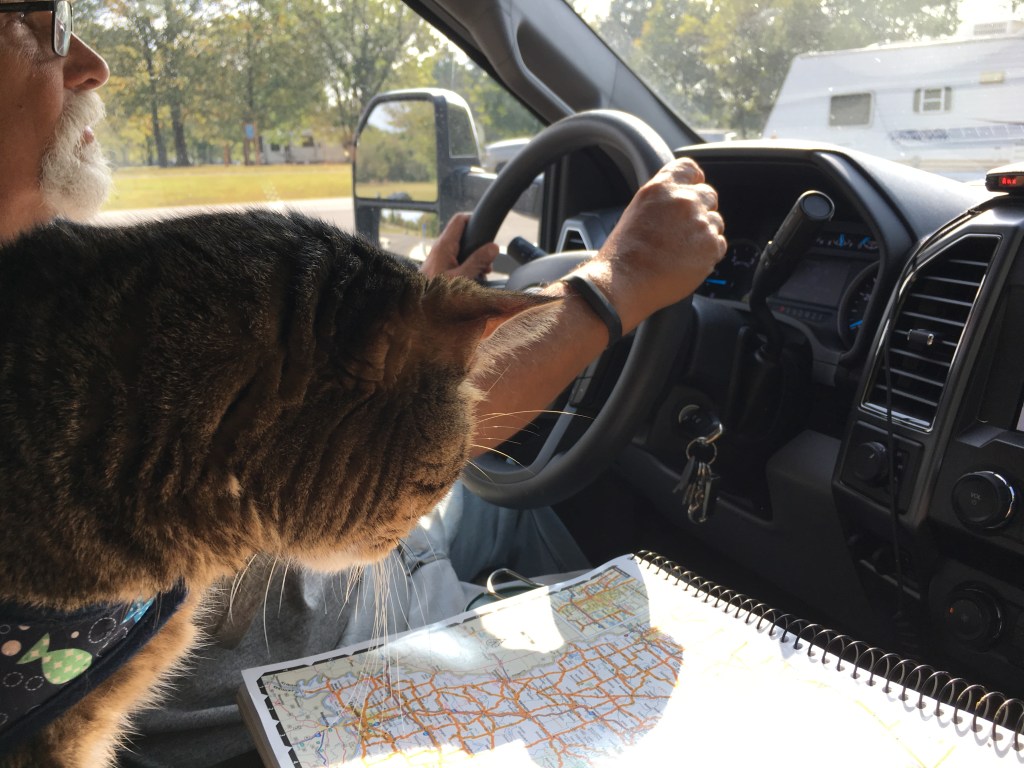Yes! And we survived… for the most part. Part of our decision on doing this was thinking: could we live in such small quarters? We realized that when we were home, we were either on the sofa, at the dining table, in the kitchen, in the bathroom, or in bed. This fifth wheel has all of the above, but a little smaller. My tools have been downsized from my big rolling toolbox to five ammo boxes of various sizes. The oven in this thing is crap, but it is the same in almost all of them. The good side is that it comes with a microwave / convection oven and Claudia has mastered cooking anything in it that she could make in the old oven. The big hassle so far is moving day. It starts the night before after dinner as we break things down and put stuff away. Evening checklist is 16 things, morning list is 13. The only bad things that have happened so far were on moving days. Storage is another issue. The rv has a limit of about 2900# of personal belongings – who could bring that much? WE CAN! At the first weighing, we were 300# shy of our max. We have put more into storage but I know we are still up there. Driving this big setup is not to bad, actually not much worse than the Frontier pulling the popup. Just did our first mountain pass – Monteagle, northwest of Chattanooga – 5% down for about 5 miles. I only touched the brake once when cars in front slowed to pass a semi. The truck downshifts and applies the engine brake automatically. Just set the cruise control. I do have one issue – even being short, I continue to bump my head on a regular basis. So, we continue onward.