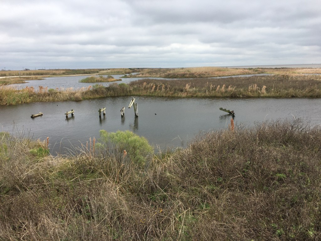 Texas is the epicenter for oil in the US. Starting at the Texas Energy Museum, we saw outstanding displays of how oil wells are drilled, how the oil was created, and how it is broken into different products, called cracking. This is a highly detailed museum with great displays and information. The next trip was to see Sea Rim State Park and Texas Point National Wildlife Refuge. On the way down, we got to see the refineries in action as there are refineries down here measured in square miles, not acres. Interesting, there were no tanks for storage. The oil comes the few miles from the coast in pipes and the finished products also leave via pipes and trucks. Sea Rim is just about the farthest eastern gulf coast in Texas. Although it is quite cool, most of the 25 RV sites here are filled with people walking the beaches, hiking the trails, or just enjoying the view of the gulf over morning coffee.