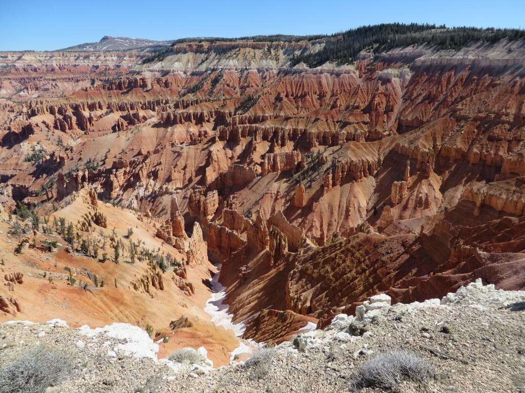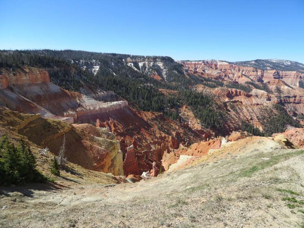 Cedar Breaks National Monument is the little brother of Zion and Bryce as it is only three miles long. What makes it special is the rim here is over 10000 feet high and the drop to the canyon floor is over 2000 feet. Visiting on Memorial Day, it is surprising that the park is so empty. Unfortunately, the trails are closed so no hiking today