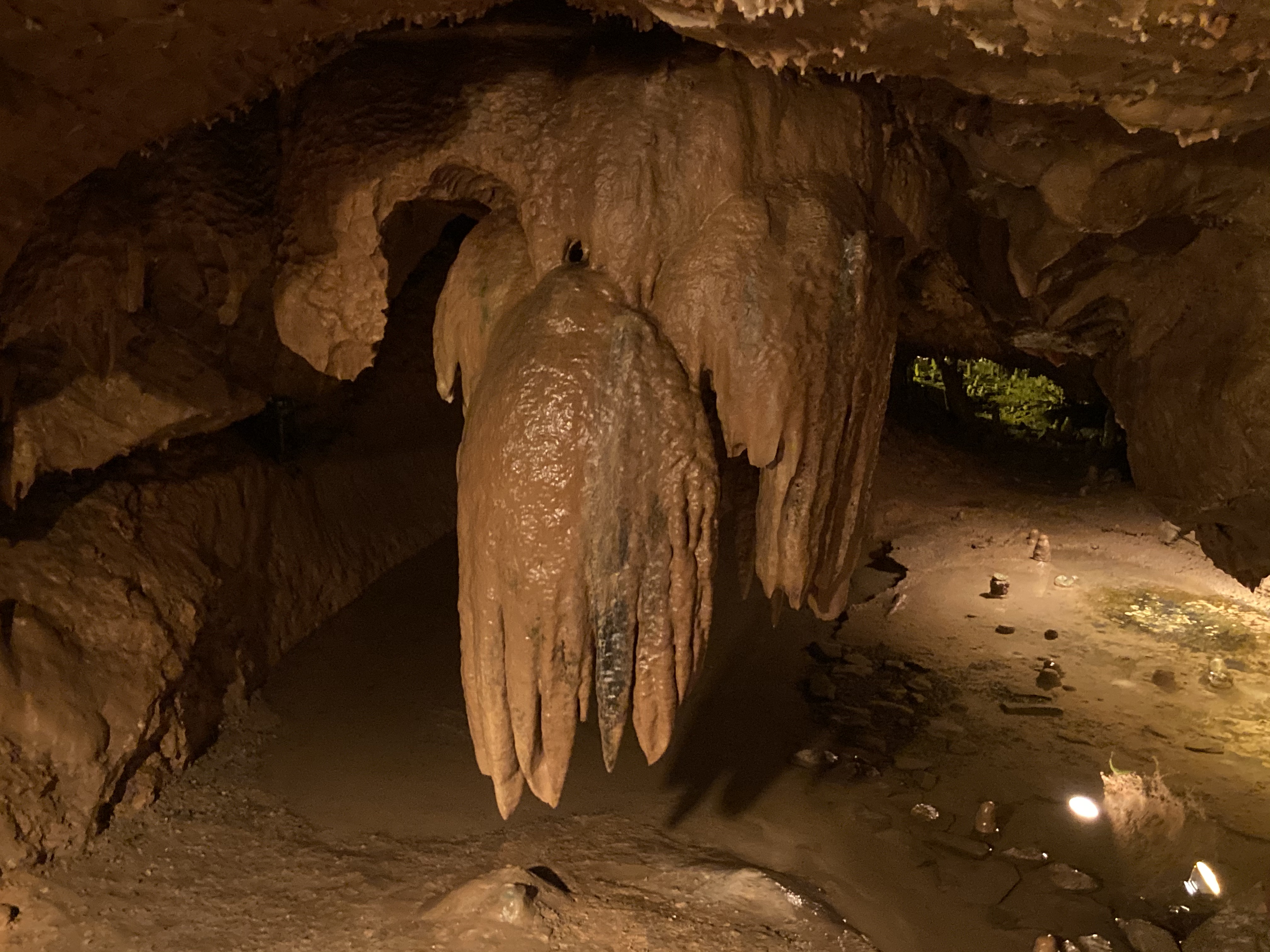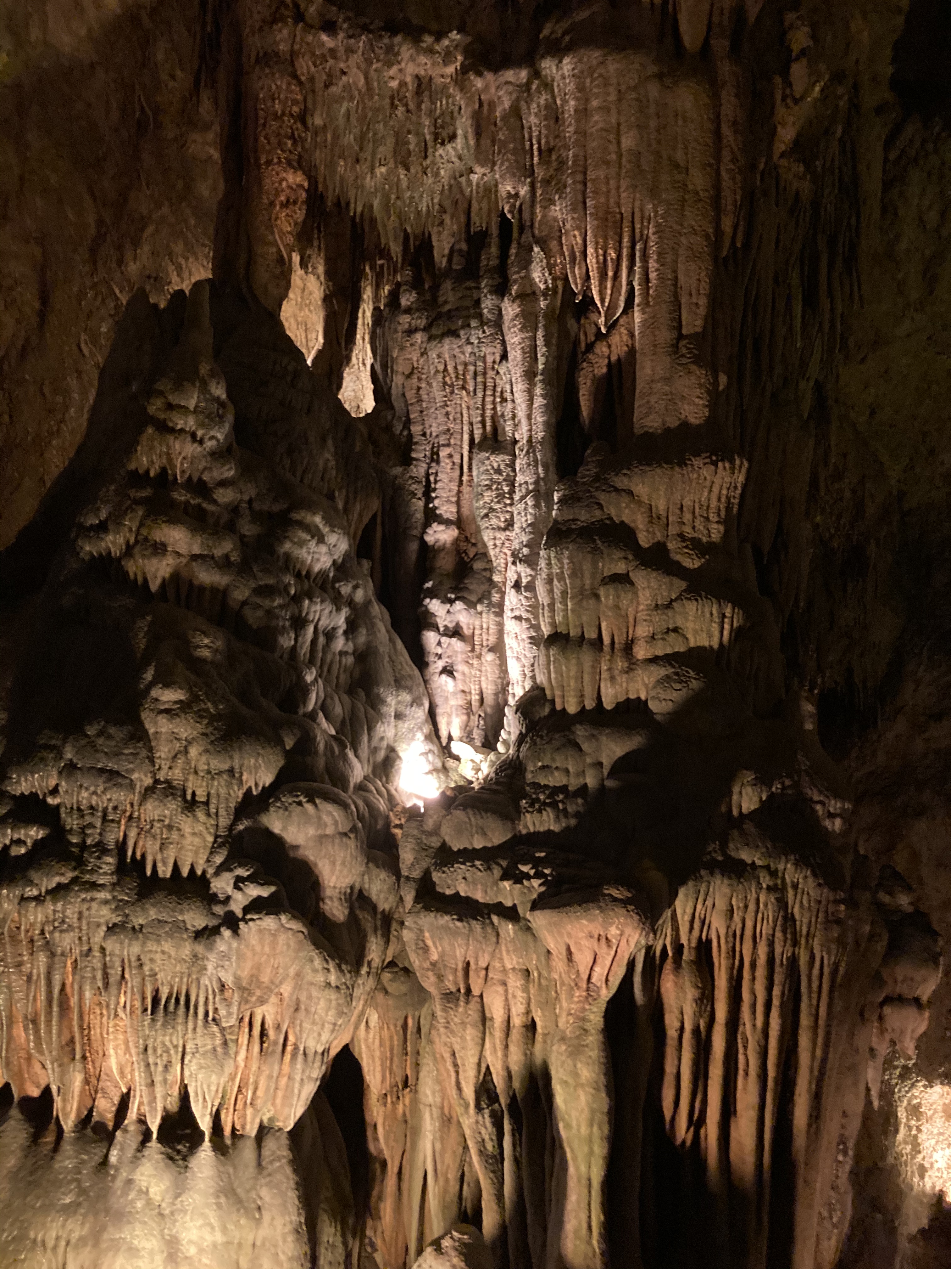 We made our next stop in Salem, VA. Our first day exploring took us back on the Blue Ridge Parkway. Once again, the pull outs here afford beautiful views of the mountains and the towns below. Our second day, we toured Dixie Caverns. The name came from the dog that found the cavern in 1920. Another day, we drove up to hike at Natural Bridge State Park. The bridge started forming millions of years ago. It is said that George Washington carved his name in the bridge but we don’t know where.
