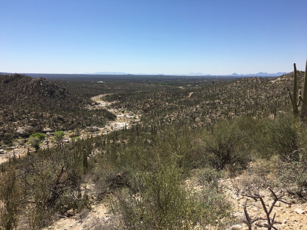 We are now staying in a desert RV park just southeast of Tucson. Tucson is another city in a valley amongst the mountains here in the southwest. Our first outing was a trip to Saguaro National Park East. This park and its brother on the west side of Tucson are home to the giant saguaro cactus, the nation’s largest. There was a nice driving loop that was quite scenic with parking lots at the trailheads. We hiked a couple of trails to explore the terrain. The next day, we drove up to the top of Mount Lemmon. With the peak at over 9000 feet, it is cold enough in the winter to have some great skiing. No skiing now but the chair lift operates all year to take visitors to the peak for the view. Days later, we celebrated Claudia’s birthday by visiting the 22nd Street Antique Mall, the Historic 4th Ave District, and dinner at one of the highest rated Mexican restaurants in Tucson, El Charro. A day later, we were off to find the Tanque Verde Falls. Yes, they do have waterfalls in the desert mountains, but this was a moderate rated trail that we were never going to see as it was beyond our abilities. We did get our exercise along with some great pictures.