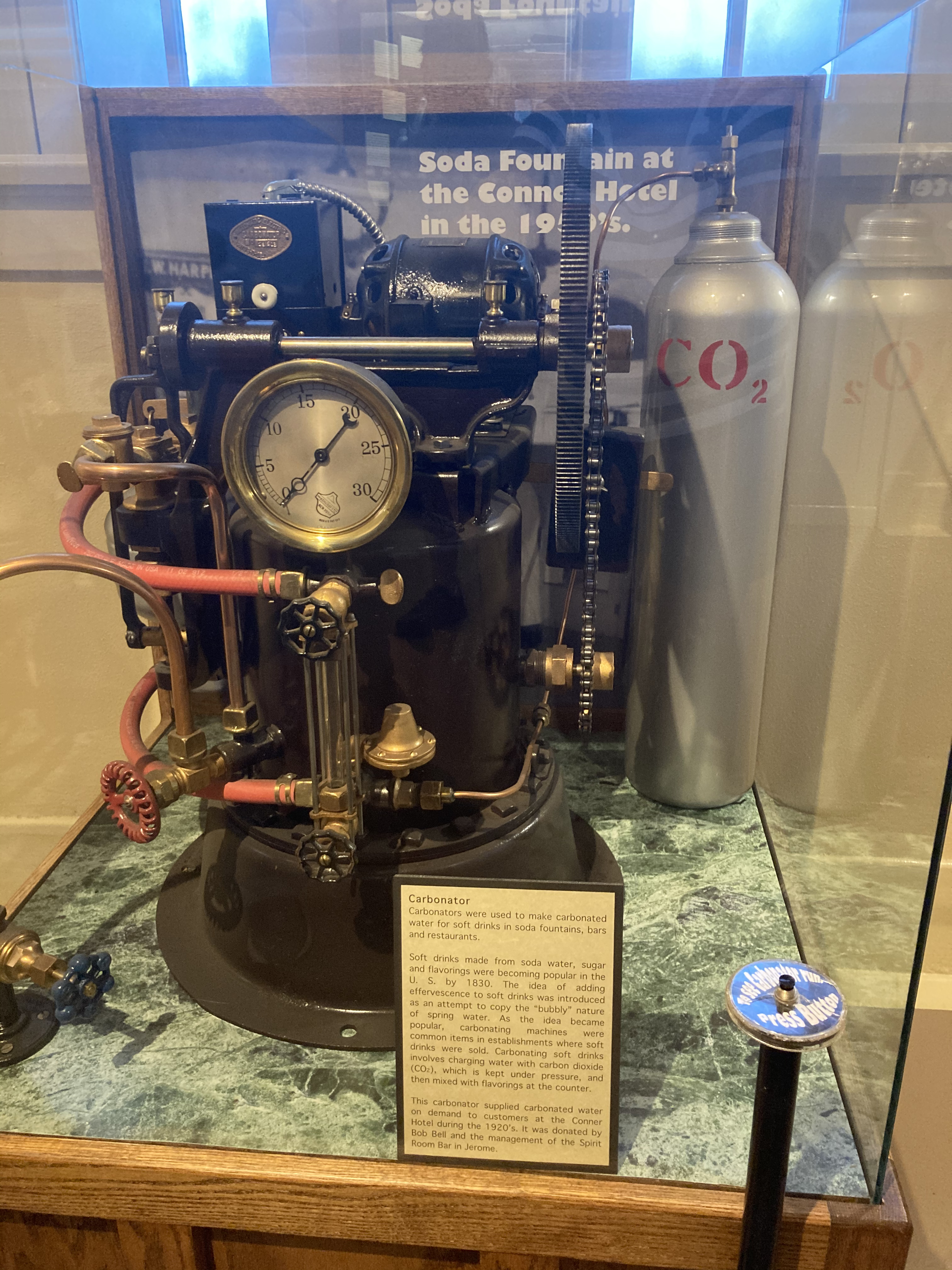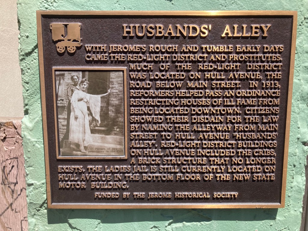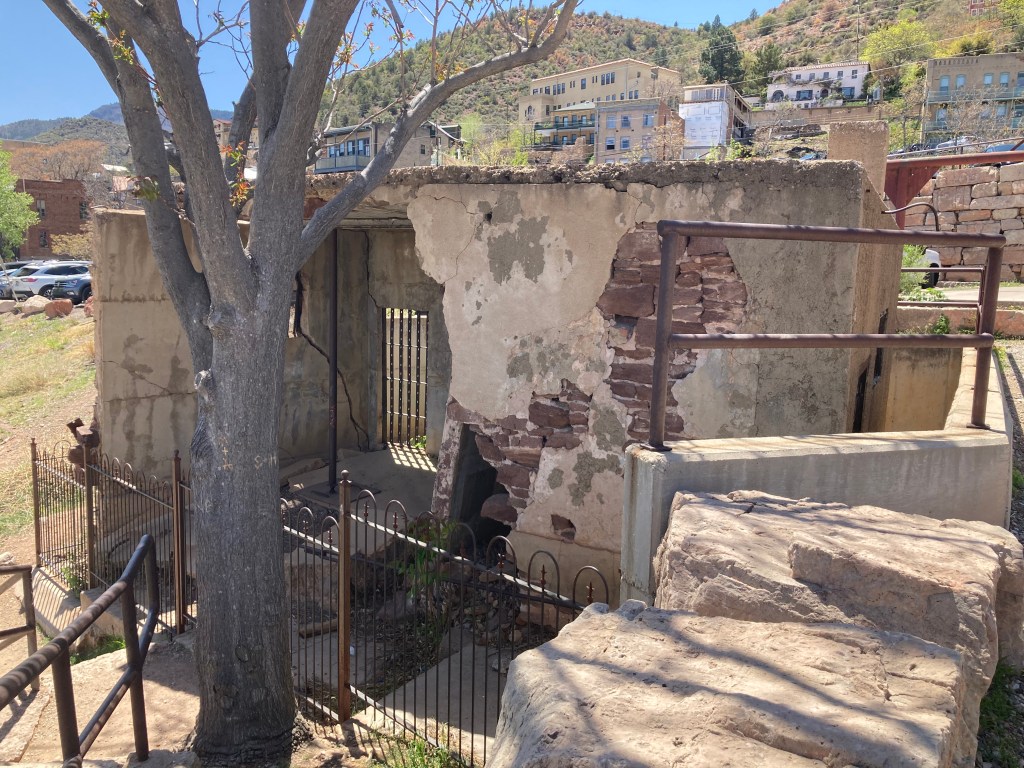 On the side of Cleopatra Hill in central Arizona lies the town of Jerome. Born in the late 1800’s as a copper mining camp, it grew to a population of 15000 in the 1920’s and had a total output of over 2 billion pounds of copper, gold, and silver. After the price of copper dropped during the Great Depression, the town shrank as did the copper output. In 1953, all mining was stopped and Jerome became a ghost town of less than 100 people. Today, Jerome is a home to 500 residents, eateries, galleries, shops, and history.