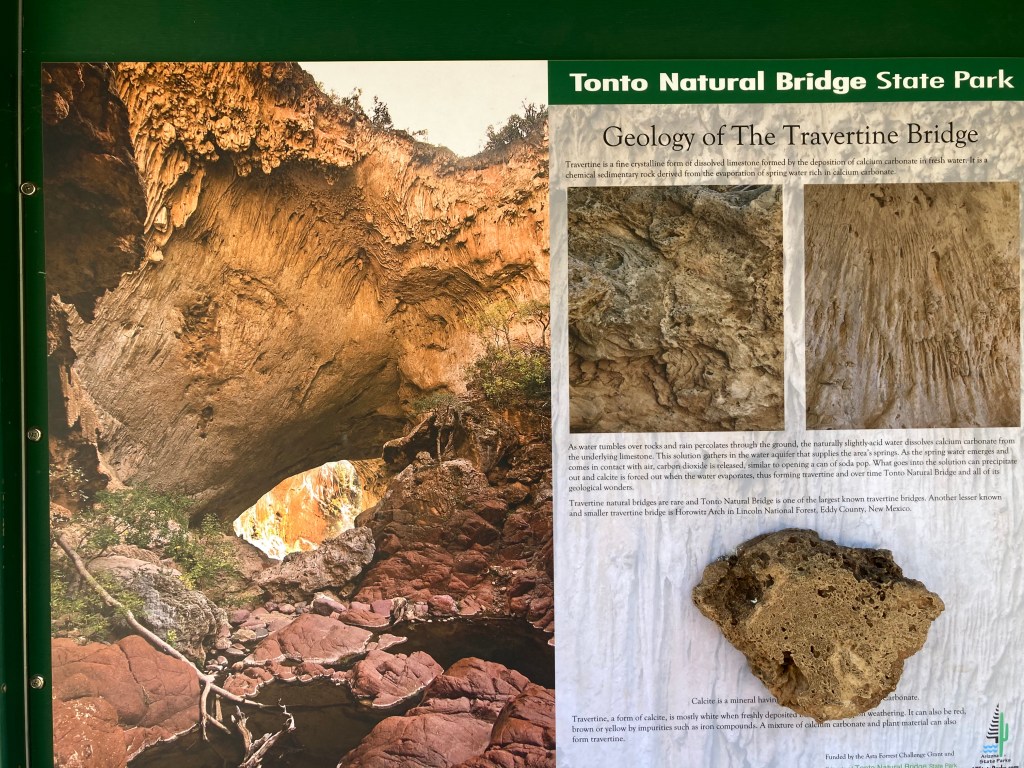 Located near Payson Az is the Tonto Natural Bridge, a natural arch. The tunnel under the arch is 400 feet long and the arch reaches 185 feet above the ground. Almost all of the trails here are a half mile long or less, yet they are moderate to strenuous as they descend from the rim to the floor.