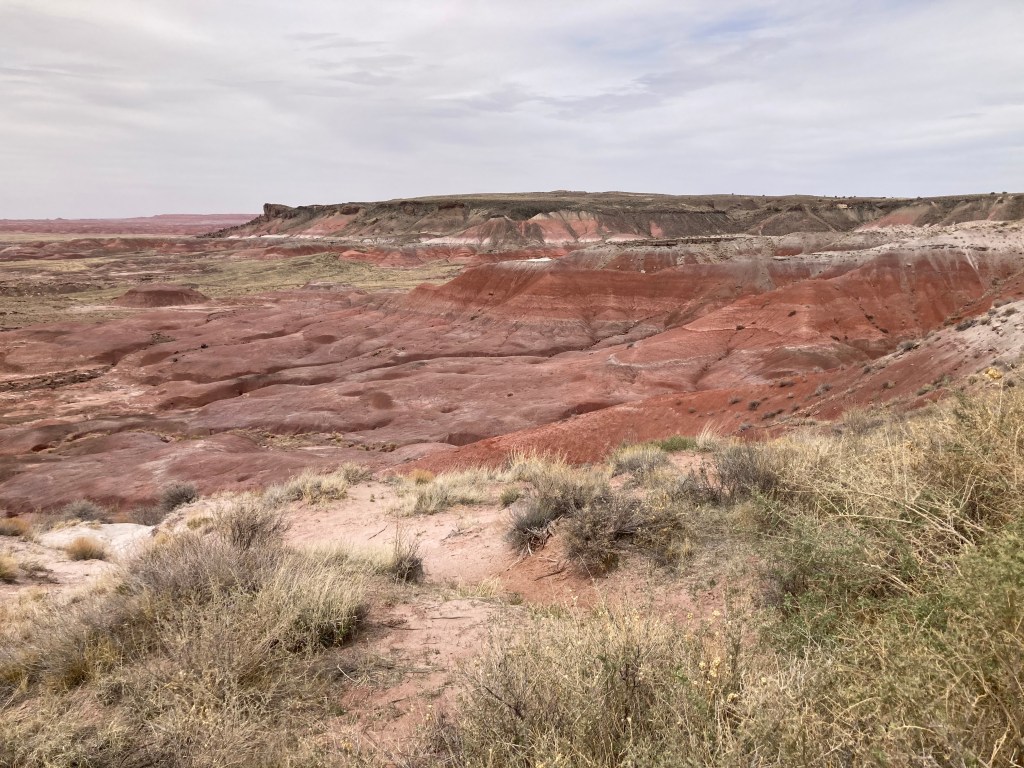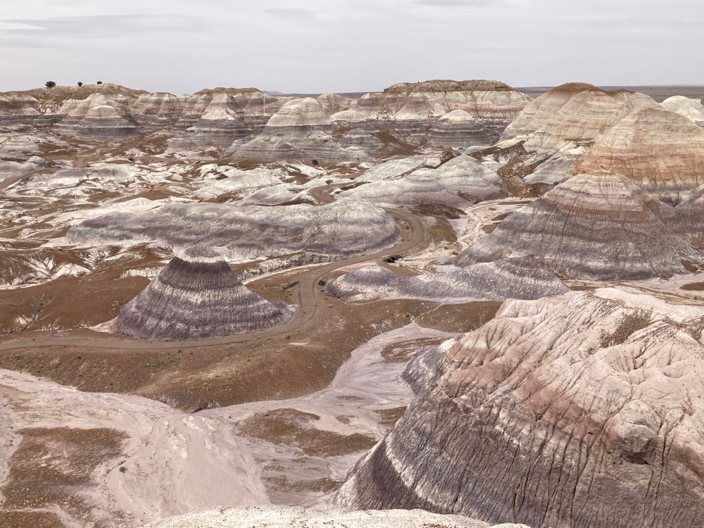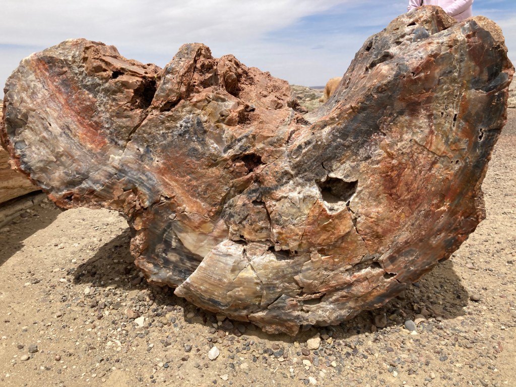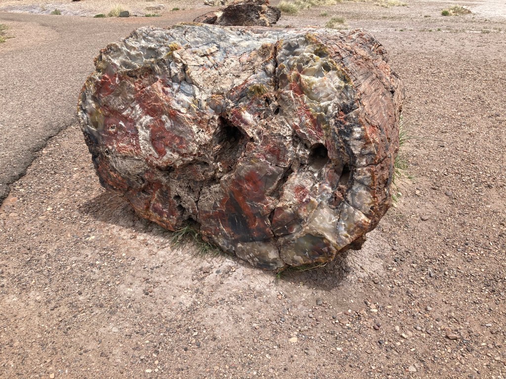 This amazing place was one of the places we missed last year due to the Covid shutdowns, but we got there this time! Over 200 million years ago, a flood carried many, many downed trees down into this area. Here they rested under water rich in minerals for eons. During that time, the organic material in the trees was converted into solid quartz. When the water receded, the trees were still deep under the soil. 60 million years ago, the Colorado Plateau began upheaving and the brittle quartz cracked. Once the earth washed away, the trees were exposed and appear to have been chainsawed into pieces. In the northern part of the park lies the Painted Desert. More beautiful scenery formed over eons.