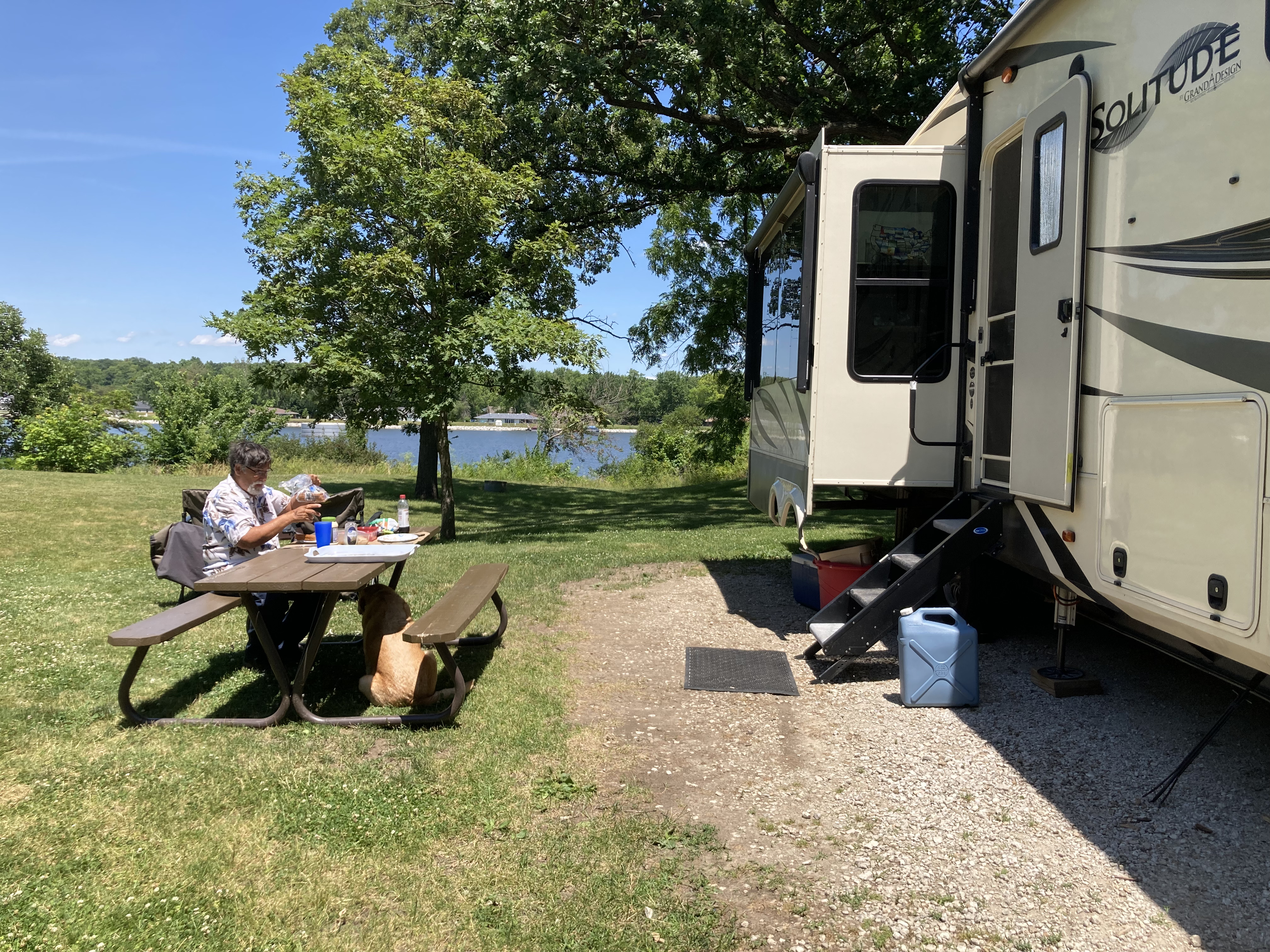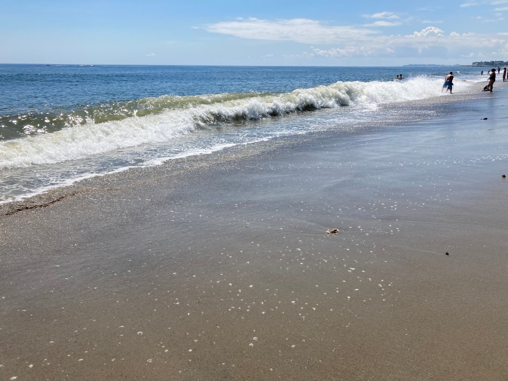 So we left Maine to start our travels south and our first stop was North Hampton New Hampshire, about three miles from the Atlantic. Henri was a cat 1 storm heading for Long Island with a predicted hooked path that SHOULD go around us. If we made a run, we would have to get halfway across New York to escape. We decided to stay put and we got some light rain and a little wind, meh. We did explore the coast and found some great seafood and beautiful beaches. Even with a water temp in the 60s, Claudia did wade into the surf, but the approaching storm was churning some good waves.
